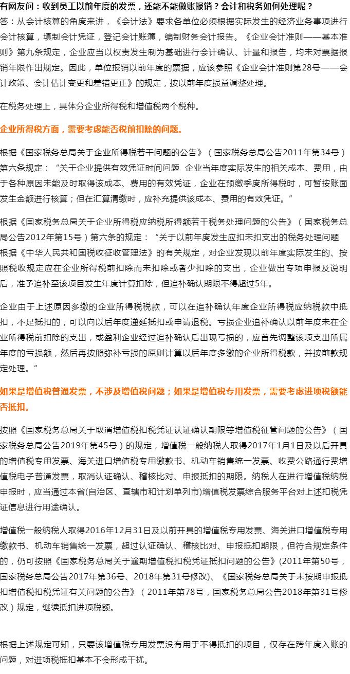 員工拿以前年度的發(fā)票報(bào)銷,會(huì)計(jì)和稅務(wù)該如何處理?